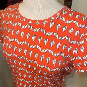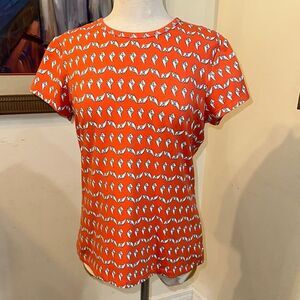 So colorful and cute! Brighten your wardrobe with this vibrant orange/white shell graphic top. Perfect for casual outings, this top offers both style and comfort. It has stretch for a great fit. Looks new! Excellent condition.