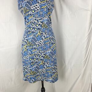 J.McLaughlin XS Blue Abstract Sheath Dress • Preppy • Minimalist • Casual