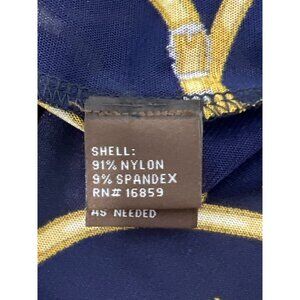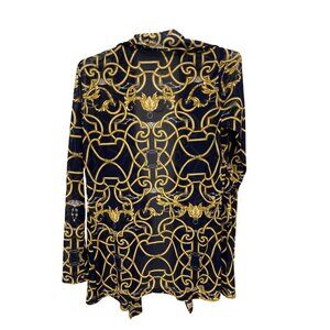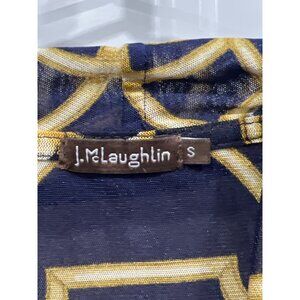 This J.McLaughlin women's cardigan blazer combines style and comfort. Crafted from nylon and spandex, the navy and gold print adds a sophisticated touch to any wardrobe.