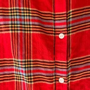 J.McLaughlin Sz M Red Plaid Lois Blouse Long Sleeves Light Fabric Top Shirt