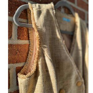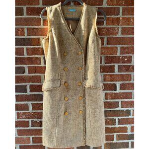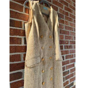 J.McLaughlin Tan Linen Blend Double Breasted Fringe Sheath Dress | Size 6