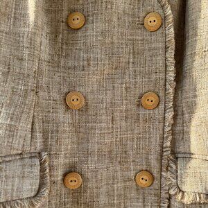 🌟 Chic + timeless! This J.McLaughlin linen-blend sheath dress is the perfect balance of tailored + feminine. Features double-breasted gold-tone buttons, fringe trim, and a fully lined interior. Size 6. Includes spare button. A sophisticated neutral piece for work, brunch, or your next event! ✨