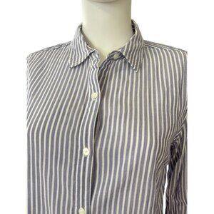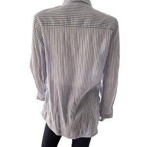 striped shirt, button-down shirt, J.McLaughlin shirt, womens shirt, professional attire, casual wear, blue and white, cotton shirt, long sleeves, office wear, everyday wear, size M, collared shirt