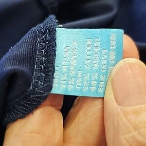 J.McLaughlin, navy blue snap closure dress. Red ribbon down the front. Size sm