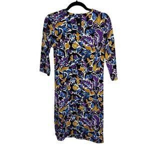 J. McLaughlin purple, yellow, navy pattern dress- size M