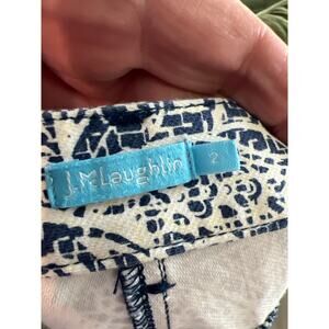 J.McLaughlin size 2 blue and off white pencil skirt in excellent condition. Good stretch. Waist is 14” across and it is 19” long.
