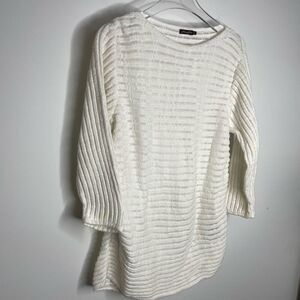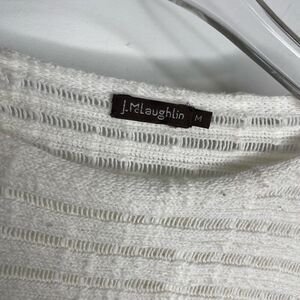 J. McLaughlin white open knit M Medium sweater 100% cotton 3/4 Sleeve crew boat
