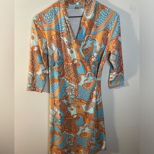 J.McLaughlin||Chinoiserie Panama Wrap Dress Orange, Knee Length Size XS