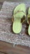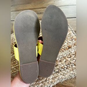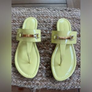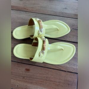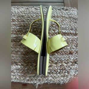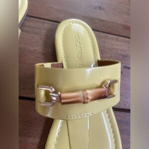 Chic J.McLaughlin Nora patent leather yellow sandals with a sleek gold buckle. Color - Chartreuse