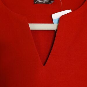 NWT J. McLaughlin Odelia Dress in Red. This classic dress features a split v-neck and 3/4 length sleeves with 4 gold and black buttons on the cuffs. Simple and elegant, this dress is gorgeous! 57% rayon, 36% nylon and 7% spandex.