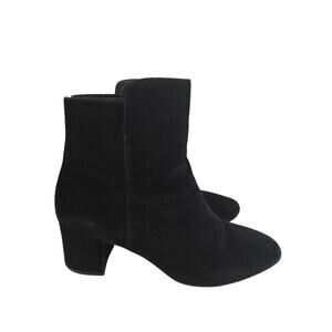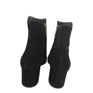 Aida Suede Bootie in black suede and gold-tone hardware Inner side zip-up closure Lightly padded leather insole Smooth leather sole with light traction 2.5in heel 5in shaft 10.5in boot circumference Please note: All measurements are approximate and were taken from a size 7; slight variations may occur. Imported