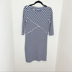 DESCRIPTION: Navy & White in color, sheath style fit, 3/4 sleeve, stretch, Comfortable, easy to wear dress