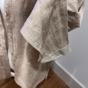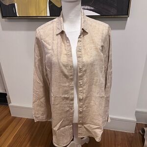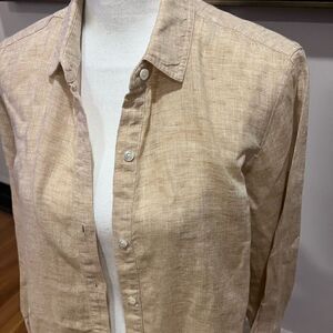J Mclaughlin women’s 100% linen button down blouse, perfect condition, it is a tan color, size medium