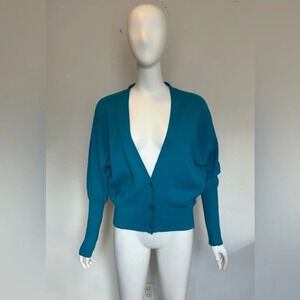 JNBY Women Bright Buttoned Blue Teal Cardigan Cotton Size M Mint Condition