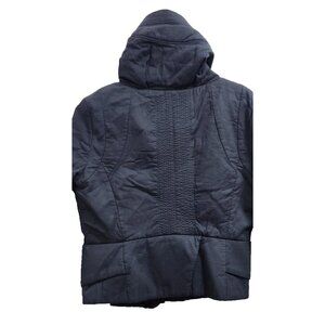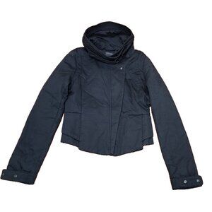 JNBY jacket L, women’s high collar jacket, asymmetrical zipper jacket, black minimalist coat, modern streetwear outerwear, fashion-forward jacket, structured black jacket, contemporary design outerwear.