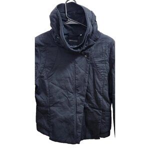JNBY Women’s Black High Collar Jacket Size L Asymmetrical Zip Modern Minimalist Style