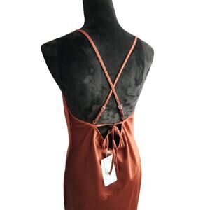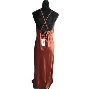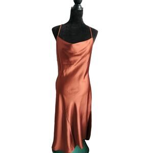 JNCLCUE Womens M Dress Rust Cowl Beck Satin Brown Maxi Wedding Party