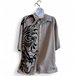 JNCO Gray and Black Casual Button Down Shirt with Tribal Design