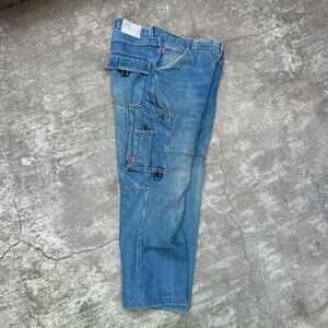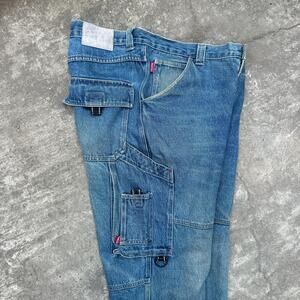 These JNCO Jeans bring back the iconic Y2K skater style with their wide-leg cargo design and bold vintage look. Crafted in durable blue denim, they feature roomy legs and functional cargo pockets that combine comfort with statement-making style. The size 34/28 fit makes them perfect for those who appreciate relaxed, throwback streetwear. A must-have for collectors or anyone wanting to channel authentic late '90s and early 2000s fashion.