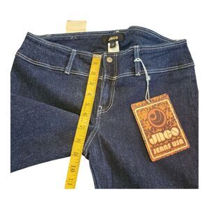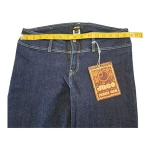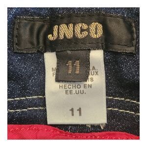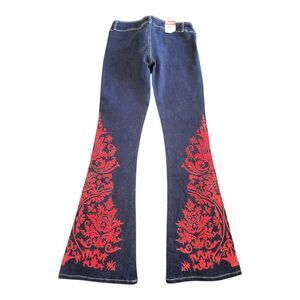 JNCO Jeans Women Size 11 Juniors Blue Denim Red Floral Embroidered Flare Vintage