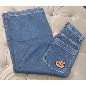A JNCO classic in Original Dark Stone Wash W101 Twin Cannon Classics Women's Jeans 28 x 32.