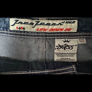 These are practically brand new, only worn one time. Back pocket features “JNCO with card suit embroidery (heart, diamond, club, spade)