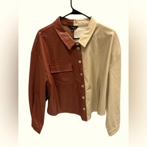 J.NNA Camel Combo Colorblock Faux Leather Shacket Y2K Size Large