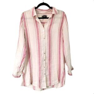 JNY 100% Linen Stripe Roll Tab Top Size M