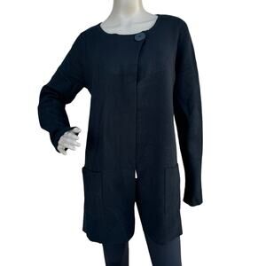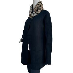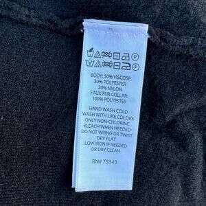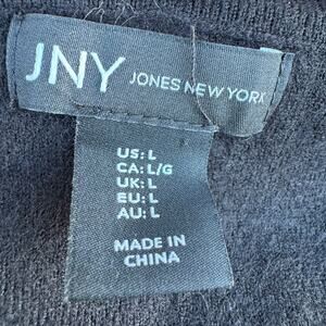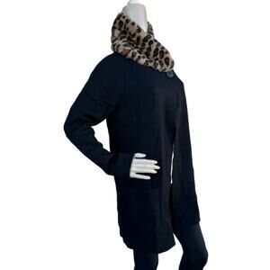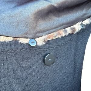 JNY Jones New York Black Knit Faux Fur Removable Collar One Button Cardigan L