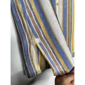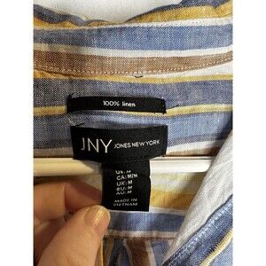 JNY Jones New York Striped 100% Linen Button Up Tunic Shirt Multicolor Sz M