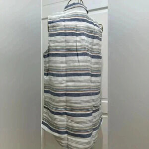 JNY Jones New York Women Large 100% Linen Striped Top Beach Club Sleeveless