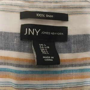 JNY Jones New York Women Large 100% Linen Stripe Beach Club Sleeveless