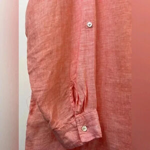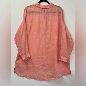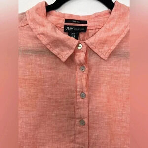 JNY 100% Linen Tunic Top Roll Tab Sleeves coral peach