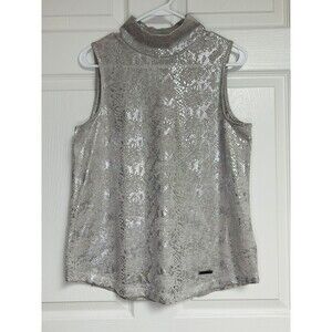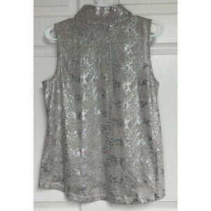 JNY New Jones York Mock Neck Sleeveless Shel Color Steel Grey Foil Size M