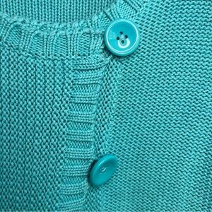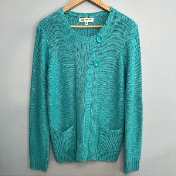 Jones New York Women's Open Front Buttons Cable Knit Cardigan Teal Sz M Cotton