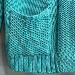 JNY Open Front Buttons Cable Knit Cardigan Teal Sz M Cotton Cottagecore Pocket