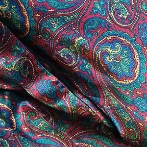 Really nice long silk looking women's robe with a vibrant colored paisley print. Worn once no rips or stains. Size M. (22)
