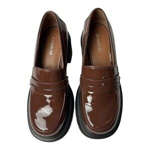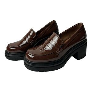 JO Mercer women’s loafers platform heels brown patent leather size US 7/ EU 37.