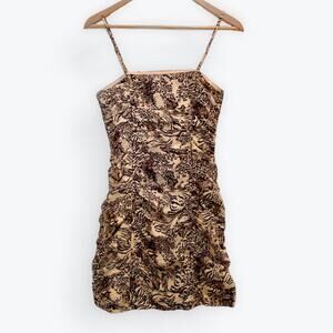 J.O.A. | Animal Mix Print Beige and Black Bodycon Ruched Mini Dress | Size S