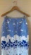 Chic pencil skirt with blue stripes and white lace overlay. Ideal for a stylish look.