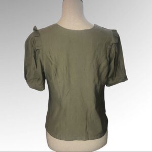 J.O.A Army Green Puff Sleeve Lace Up Back Blouse Size Medium New with Tags