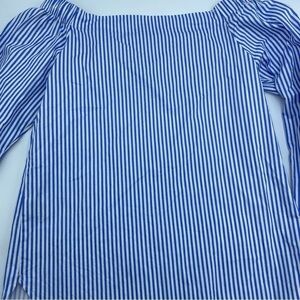 J.O.A. Blue and White Striped Off-the-shoulder Blouse