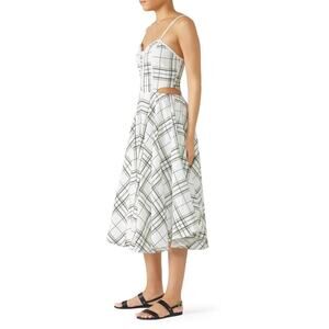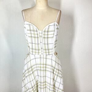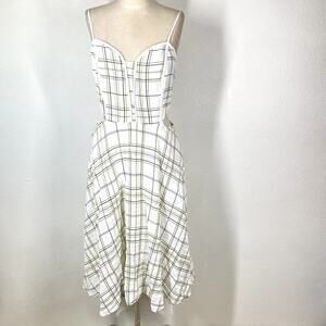 J.O.A. Checked Cut Out Midi Dress Sleeveless Sweetheart Neck White Women's L