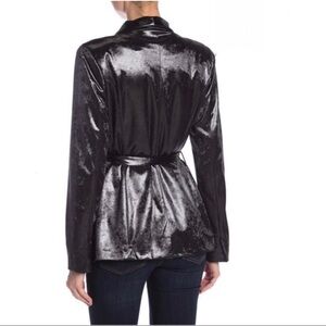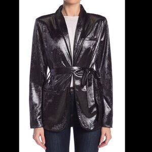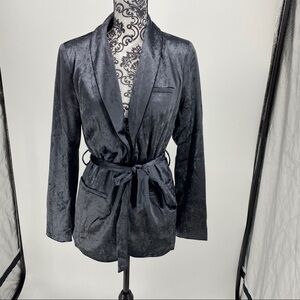 J.O.A. Crushed Velvet Blazer dark charcoal shawl collar shiny soft layering