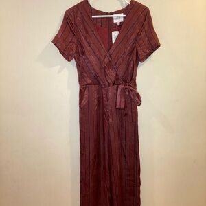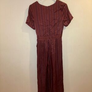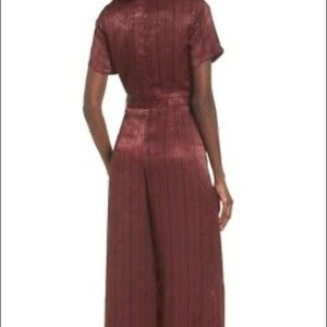 J.O.A Elegant Wide leg V-neck Satin Jumpsuit In Color Red Wine Size Small