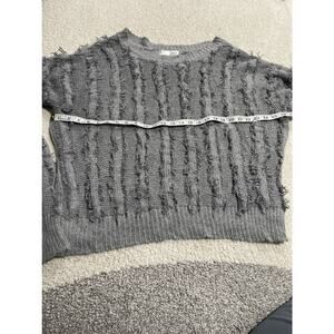 J.O.A Eyelash Angora Blend Sweater Womens Large Long Sleeve Pullover Fringe Gray
