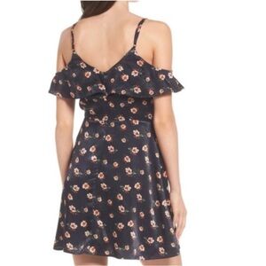 J.O.A. Floral Satin Cold Shoulder Ruffle Mini Dress