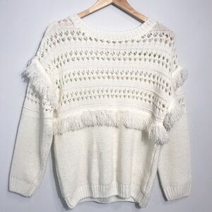 Like new chunky knit eyelet sweater featuring fringe detail.