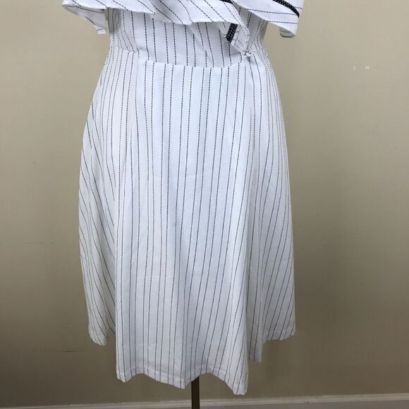 Dainty and romantic! White and black with cold shoulder detail, adjustable straps, and wrap style skirt. New without tags, fully lined. Size medium.