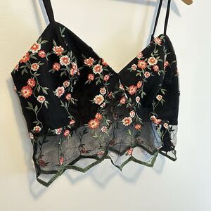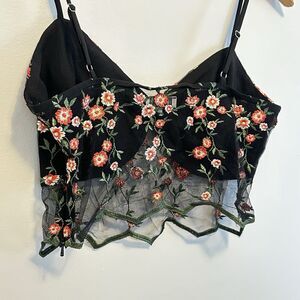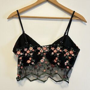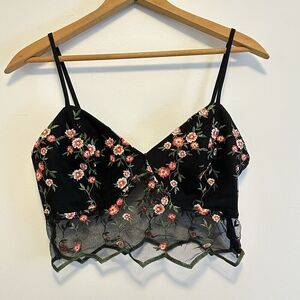 J.O.A. Just One Answer Black Red Floral Embroidered Crop Top Cami Bralette Sz S